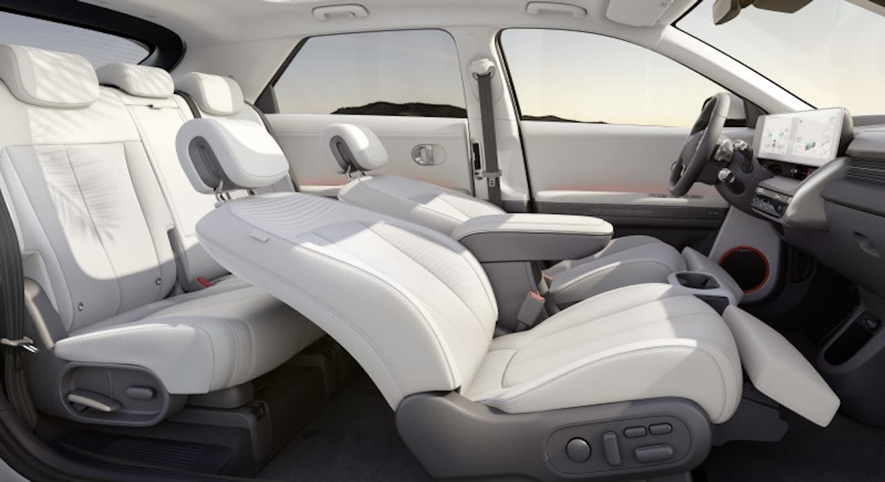 Dem markanten Design und modernster Lichtarchitektur ist Hyundai nicht nur von Außen treu geblieben. Im Inneren besticht der IONIQ 5 mit einem ungewöhnlich großen Platzangebot und viel Komfort. Es kann von einer Wohnzimmer-Atmosphäre gesprochen werden.